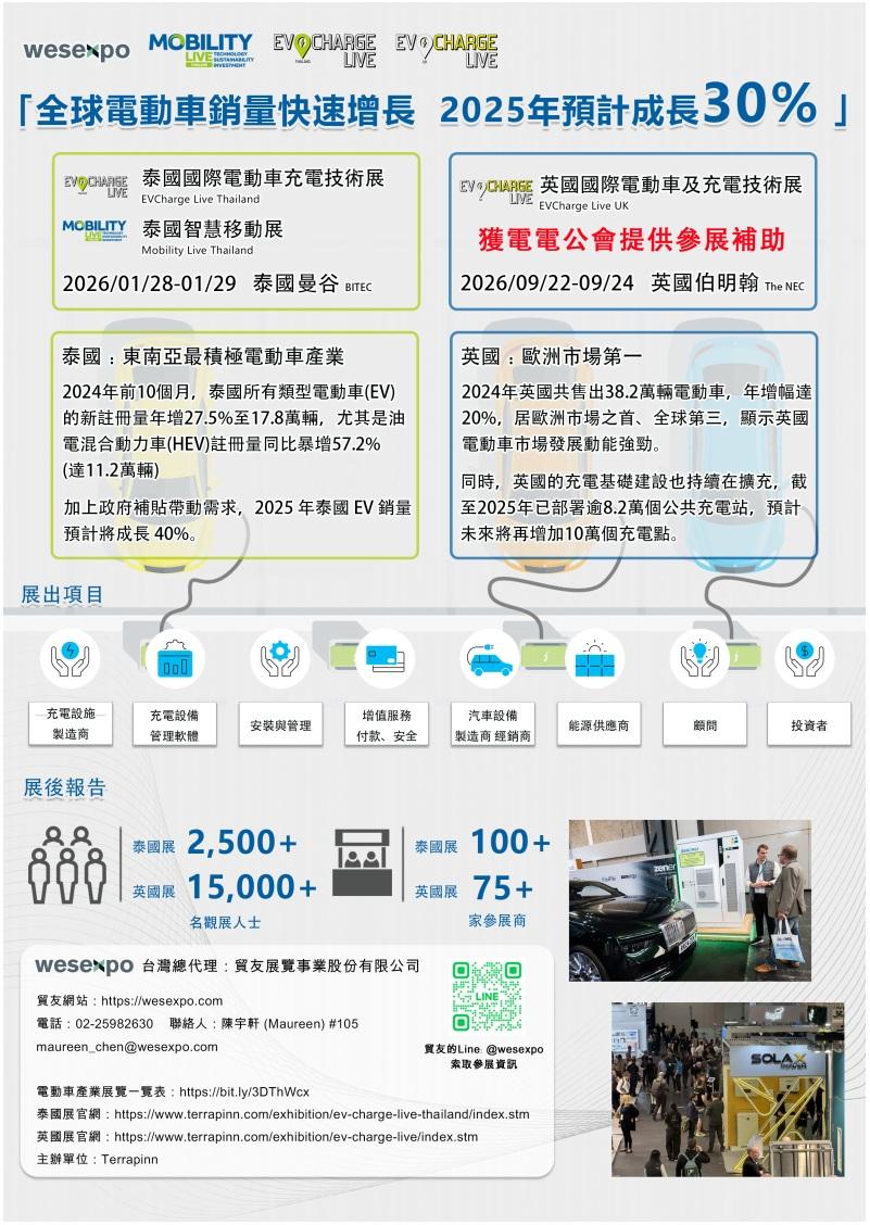 「電電公會補助參展」英國及泰國國際電動車及充電技術展EVCharge Live + 泰國智慧移動展Mobility Live Thailand