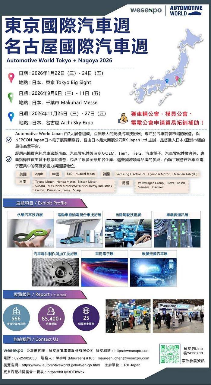 「鏈結汽車製造廠與 Tier 1+2 供應鏈」日本最大汽車產業盛會—Automotive World 系列展